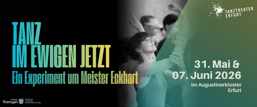 Nach der erfolgreichen Uraufführung 2019 kehrt die Junior Company des Tanztheater Erfurt mit „Tanz im ewigen Jetzt – Ein Experiment um Meister Eckhart“ zurück – an einem neuen Ort, im Innenhof des Kreuzganges des Augustinerkloster Erfurt.